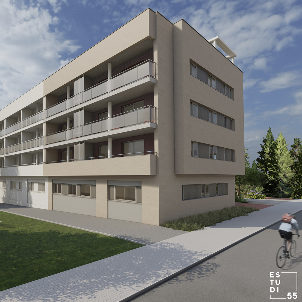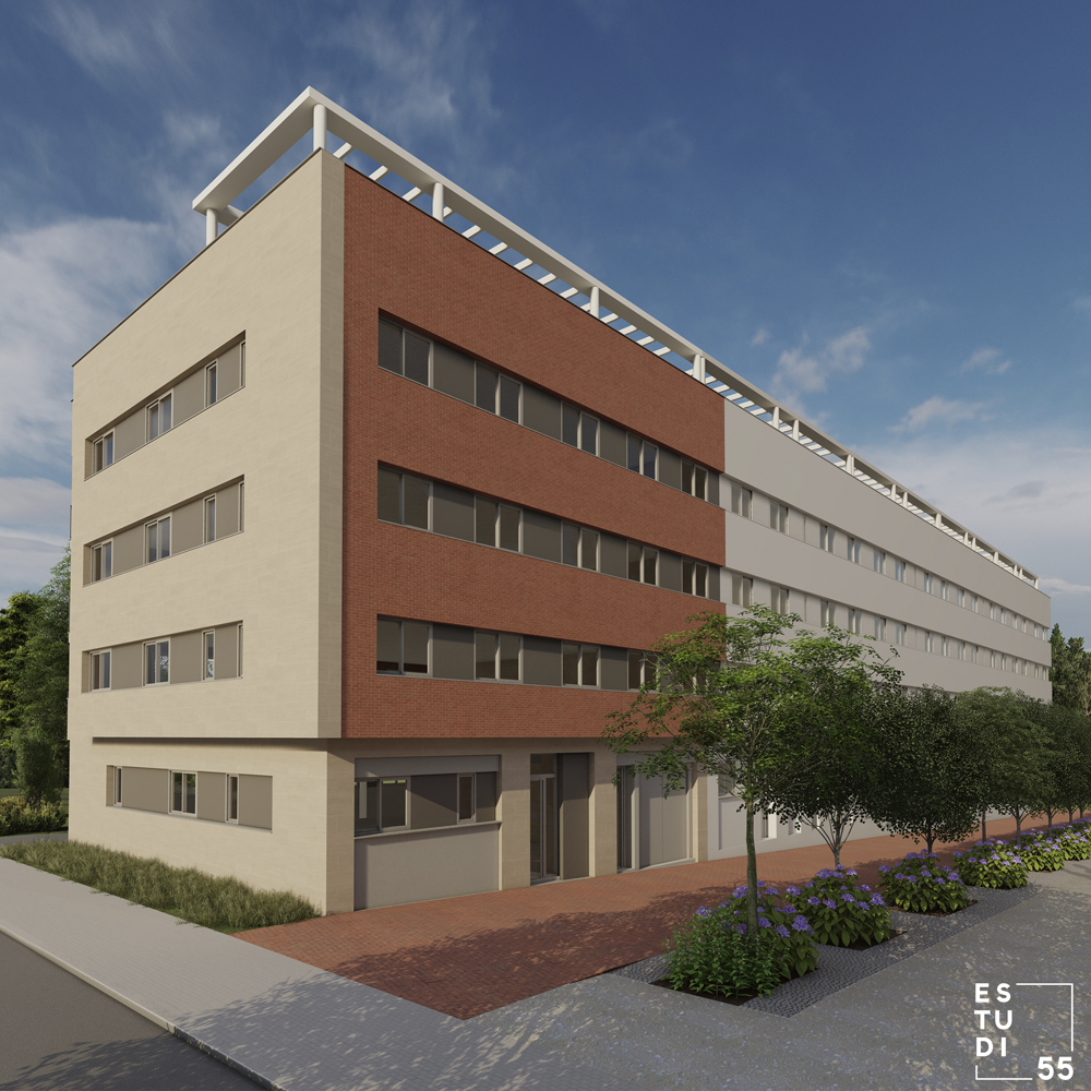 Promoción sita en la parte alta de la Avenida de Torrent, que culmina la edificación en “L” de la manzana y se materializa según la volumetría y materialidad que dicta el ED.